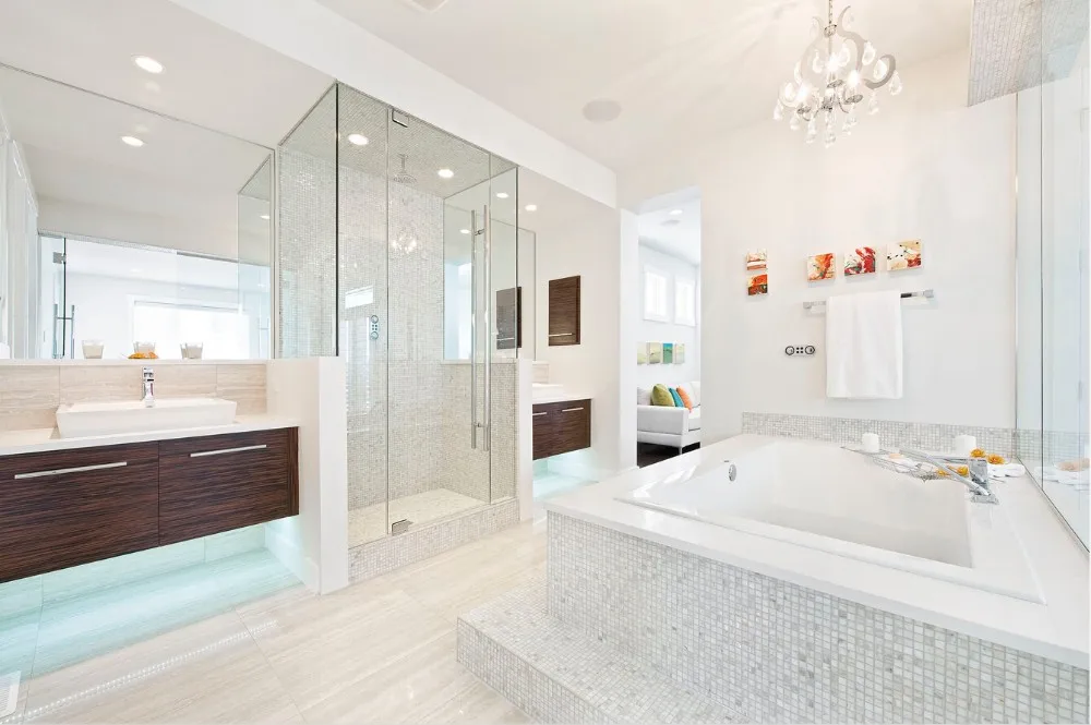 Светлые ванные комнаты пользуются особой популярностью. Во многом это связано с тем, что белый свет способен визуально расширять пространство. Светлыми обычно делают маленькие ванные и душевые. Хотя и для больших помещений этот цвет — не исключение.
