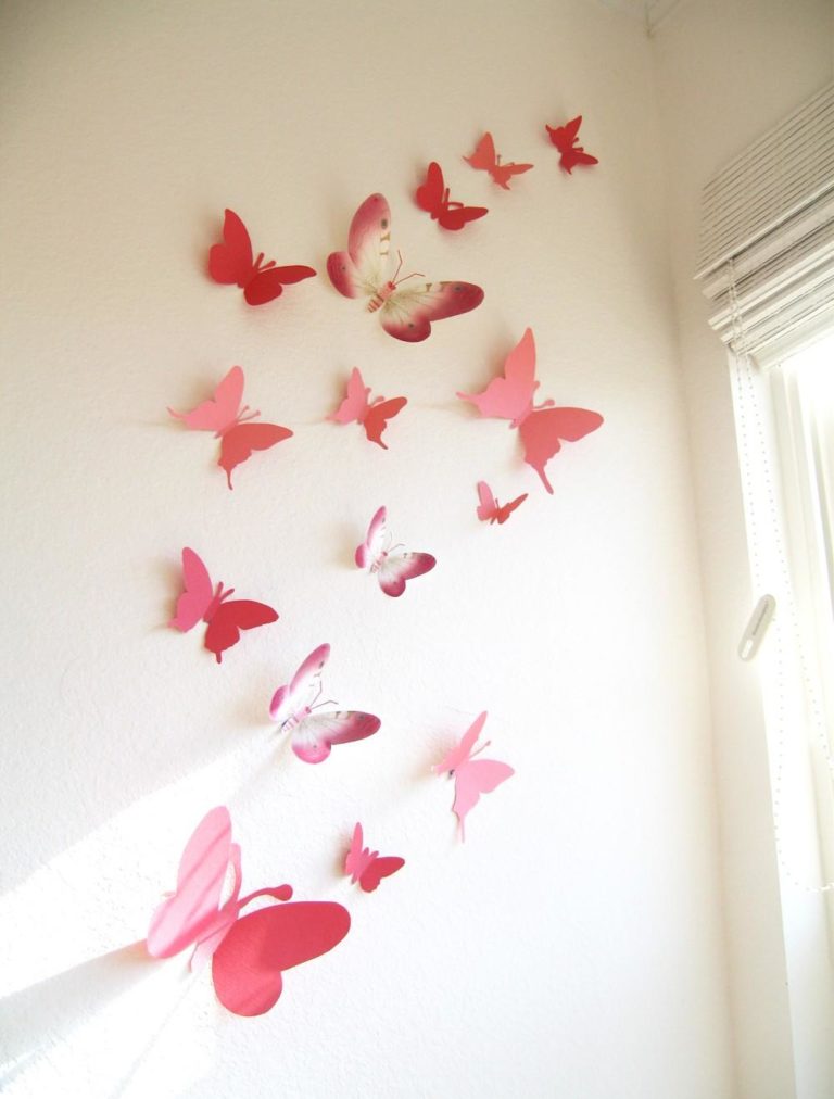 На бумагу и рисунок настенного декора в виде бабочек также можно нанести узор. Обычно для изготовления бабочек используют абстрактные принты. Вы можете легко сделать настенный декор бабочки в одном цвете и разместить их в стиле омбре. Отличным узором будет градация от белого до ярко-розового, так как это будет выглядеть очень причудливо.
