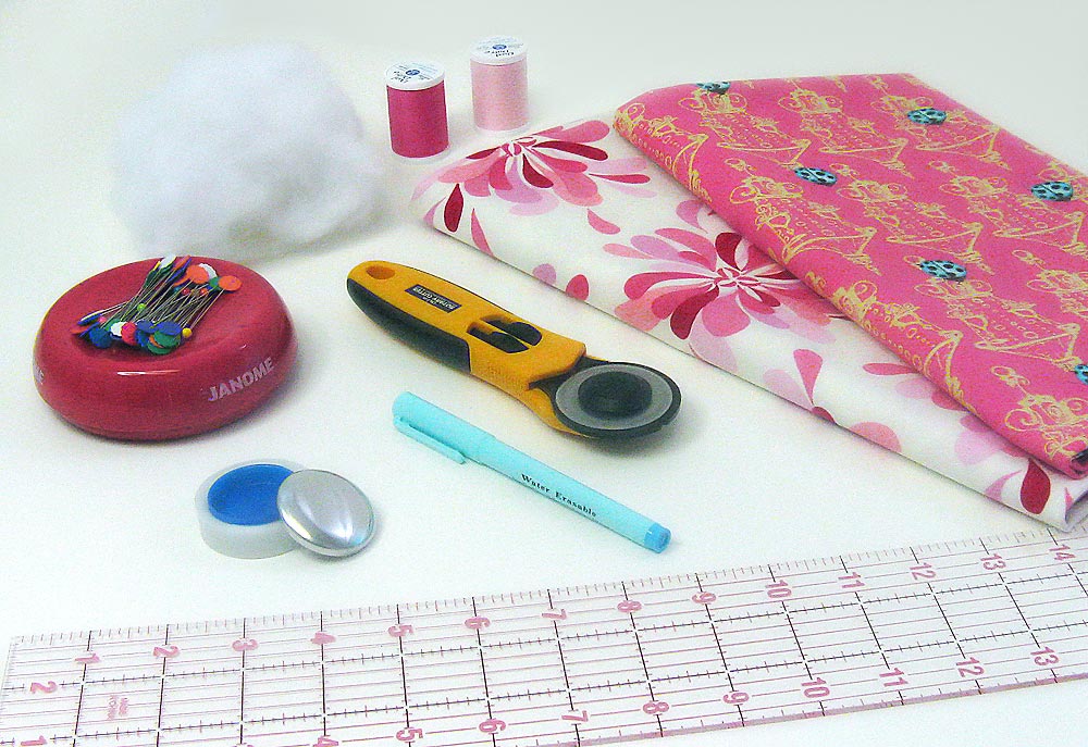 - Материалы для изготовления подушки: ткань, выкройка, наполнитель, ножницы, нитки, булавки.