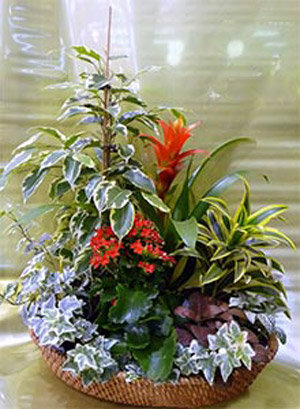 4.Аранжировки Пот-э-флер, объединяют комнатные растения и срезанные цветы. Эта аранжировка создает настоящий комнатный сад.