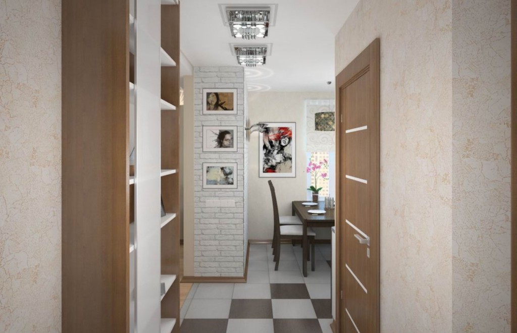 Обои с рисунками с сложными узорами только ухудшат ситуацию. Не должно быть ярких панно и одновременного использования нескольких разнотипных материалов. Все это только ухудшает общее восприятие интерьера. Их функцию превосходно выполнит одежда на вешалке.