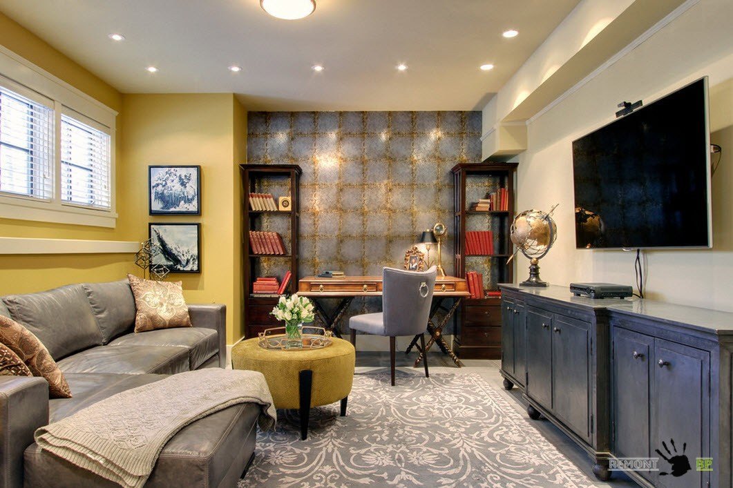 Чаще всего в этой комнате наблюдается недостаток освещения. Ей пользуются редко, в связи с чем хорошо освещенные зоны владельцы дома оставляют для себя. При декорировании этой локации необходимо компенсировать данный недостаток, особенно если комната размещена на цокольном этаже. Установка больших окон и искусственных источников света справится с этой проблемой.