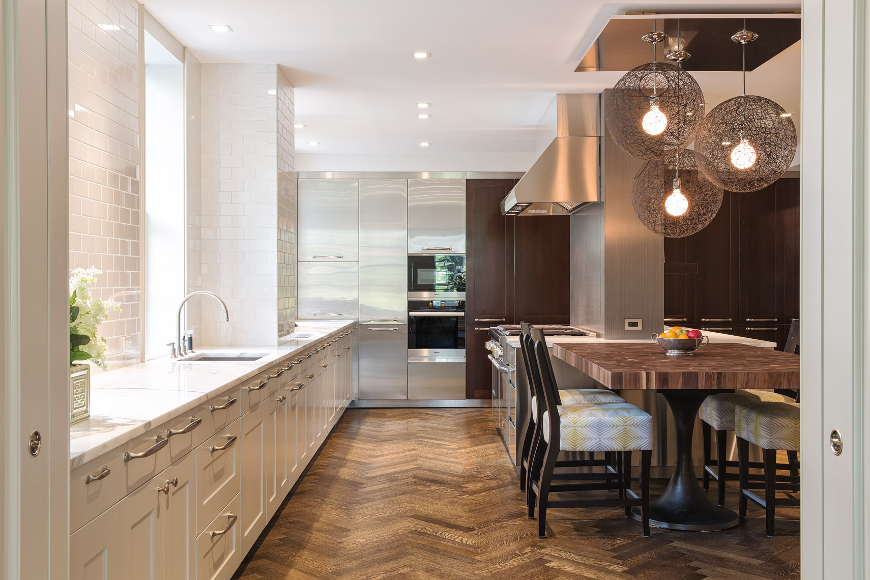Клиенты решили не переезжать, а отремонтировать. Их ремонт включал демонтаж стен и полный снос нынешнего помещения. Кухня теперь там, где когда-то была их маленькая кладовая, а вытяжка теперь находится на стене, где раньше был камин! Стена между формальной гостиной и кухней была удалена, чтобы создать одну открытую красивую жилую зону.
