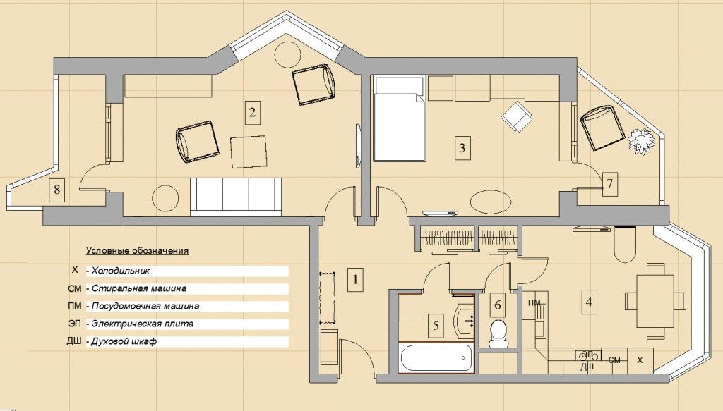 Дизайн типовых квартир П-44Т. Готовые проекты.