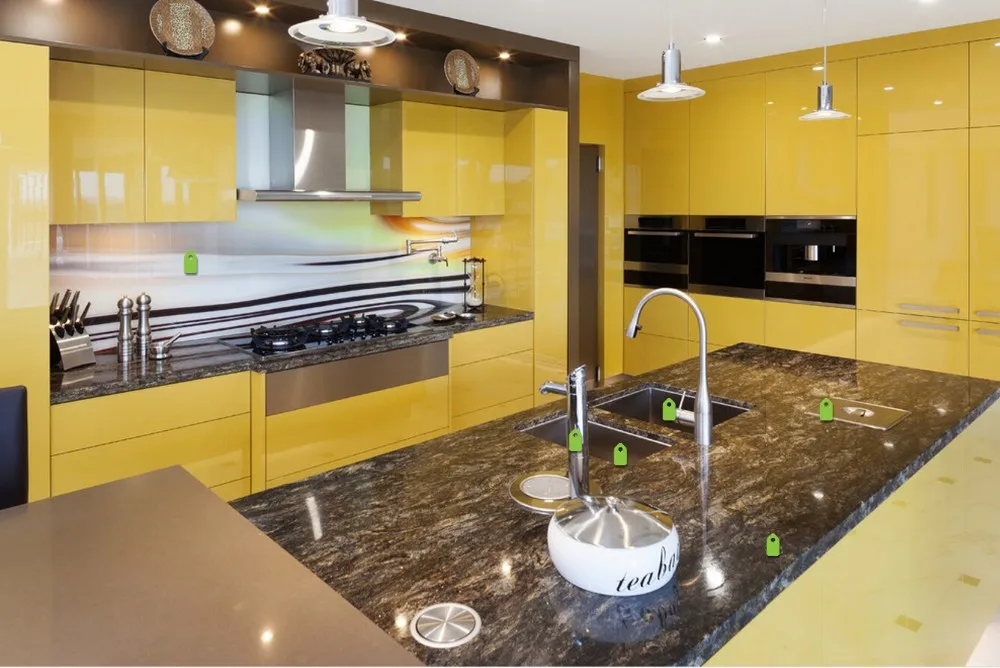 Желтый и зеленый добавляют оригинальность кухонному пространству. Сочетание этих цветов оживляет обстановку и придает индивидуальность интерьеру.