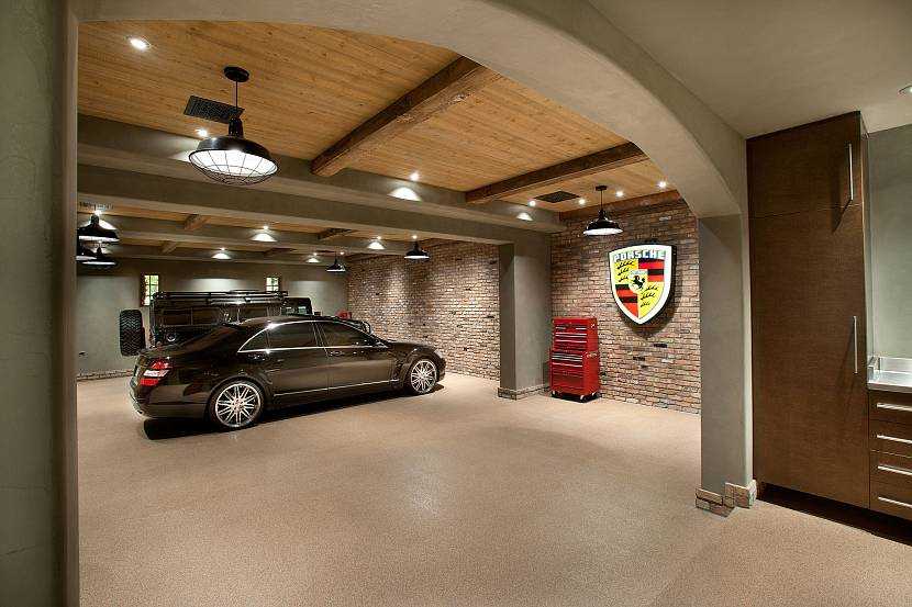 Любые стили, которые используют при оформлении жилых комнат, подходят и для обустройства гаража, но отмечают «золотую» тройку, органично вливающуюся в это помещение. Хорошо в нем смотрится лофт, который сочетается в себе «промышленную» отделку с дорогими, статусными элементами интерьера. Кирпичные стены — визитная карточка «причесанного» индастриала в этом помещении выглядят гармонично