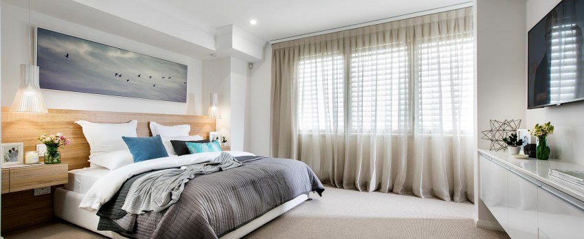 Для спальни специалисты рекомендуют использовать ткани теплых и нежных оттенков, чтобы избежать мрачности в комнате. В 2020 году модной тенденцией считается сочетание темных занавесок с пастельными шторами.