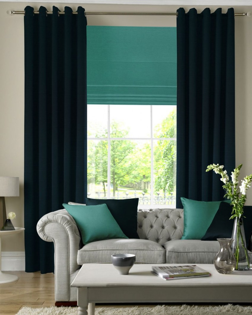 Вот уже несколько год подряд не выходят из моды однотонные плотные ткани темного цвета. В новом сезоне востребованы шторы с изображением экзотических джунглей, в цветовой гамме морских волн и изумрудного оттенка.