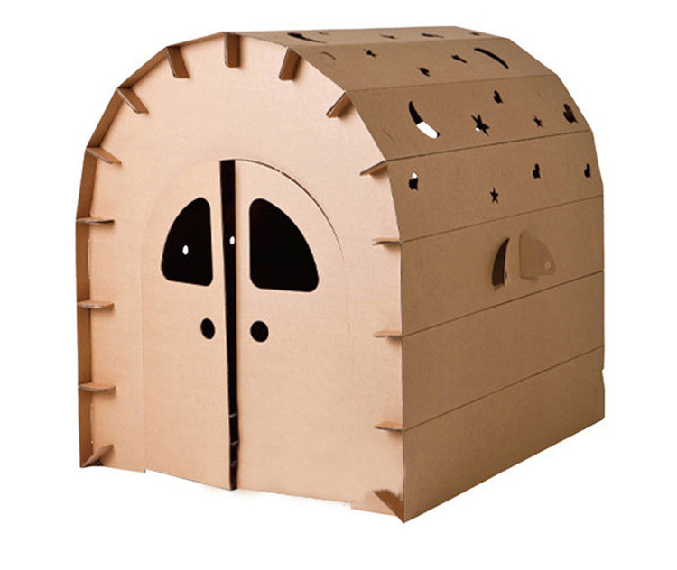 Если картон достаточно плотный, домик из картонной коробки можно снабдить настоящей фурнитурой: дверными ручками, номерной табличкой, и т. Не забудьте про занавески на окошки для еще более уютной обстановки в домике.
