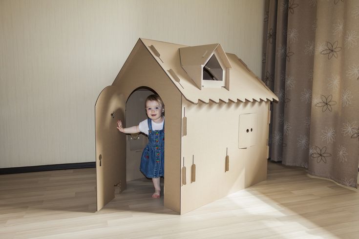 Иногда детям хочется не играть с куклами, а самим залезть в маленький детский домик и обустроить в нем свое пространство. Предоставим им такую возможность! Сделать детский домик своими руками тоже очень просто. Разница будет только в размерах, так что придется поискать большую коробку из-под бытовой техники, например, холодильника или стиральной машины.