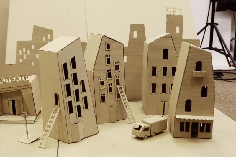 3. Вырежьте детали из картона. С помощью канцелярского ножа вырежьте двери, окна и другие детали.