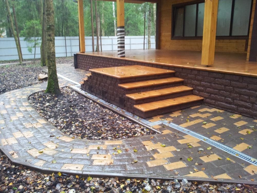 - выполняет роль дорожки вокруг дома, на которой не образуется луж во время дождя.