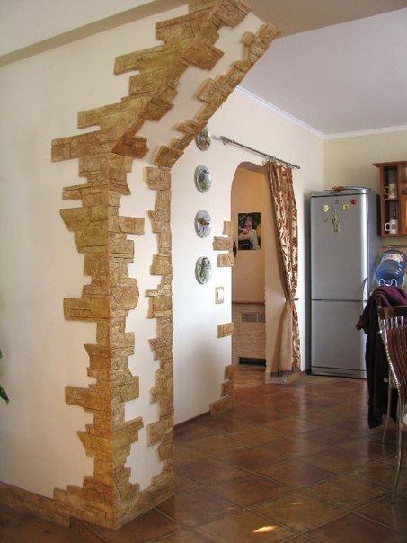 Как отделать арку декоративным камнем?Такую отделку начали применять совсем недавно, но она уже хорошо зарекомендовала себя как очень практичный вариант. Преимущество данного способа в том, что поверхности под отделку не нуждаются в специальной обработке.