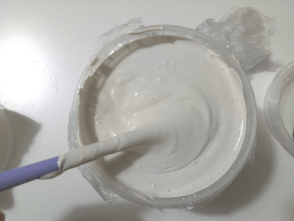 ΠΠΎΡΡΠ°Π²ΡΡΠ΅ Π² ΠΌΠΈΡΠΊΡ ΡΠΌΠ΅ΡΡ ΠΈΠ· Π²ΠΎΠ΄Ρ, ΠΌΡΠΊΠΈ ΠΈ ΠΆΠ΅Π»Π°ΡΠΈΠ½Π° ΠΈ Π²Π°ΡΠΈΡΠ΅ ΠΏΠΎΠΊΠ° ΠΎΠ½Π° Π½Π΅ ΡΡΠ°Π½Π΅Ρ Π³ΡΡΡΠΎΠΉ, ΠΊΠ°ΠΊ ΡΠΌΠ΅ΡΠ°Π½Π°. ΠΡΠΈ ΡΡΠΎΠΌ ΡΡΠ΅Π±ΡΠ΅ΡΡΡ Π΅Π΅ ΠΏΠΎΡΡΠΎΡΠ½Π½ΠΎ ΠΏΠΎΠΌΠ΅ΡΠΈΠ²Π°ΡΡ. Π‘Π½ΠΈΠΌΠΈΡΠ΅ ΠΌΠ°ΡΡΡ Ρ ΠΎΠ³Π½Ρ ΠΈ Π΄ΠΎΠ±Π°Π²ΡΡΠ΅ Π² Π½Π΅Π΅ ΡΠΏΠΈΡΡ ΠΈ Π³Π»ΠΈΡΠ΅ΡΠΈΠ½. ΠΠ±ΡΠ·Π°ΡΠ΅Π»ΡΠ½ΠΎ ΠΏΠΎΠΌΠ΅ΡΠΈΠ²Π°ΠΉΡΠ΅ ΡΠΌΠ΅ΡΡ, ΡΡΠΎΠ±Ρ ΠΎΠ½Π° ΡΡΠ°Π»Π° ΠΎΠ΄Π½ΠΎΡΠΎΠ΄Π½ΠΎΠΉ. ΠΠΎΠ³Π΄Π° ΠΊΠ»Π΅ΠΉ ΠΎΡΡΡΠ½Π΅Ρ, ΠΎΠ½ Π³ΠΎΡΠΎΠ² ΠΊ ΠΏΡΠΈΠΌΠ΅Π½Π΅Π½ΠΈΡ.