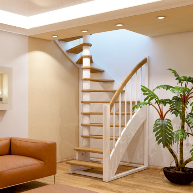 Популярны сегодня малогабаритные винтовые модели. Эти конструкции устанавливают как в многоуровневых квартирах, так и в загородных домах. Удобство эксплуатации таких сооружений заключается в соблюдении правил эргономики – движение вверх и вниз осуществляется комфортно, а под ступенями не создается мертвых зон.