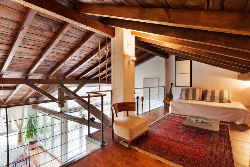 - Позволяет создать жилое пространство с необычным, интересным дизайном. Наклонные потолки, крупные окна, опорные балки — все это легко станет основой для оригинального дизайнерского решения.
