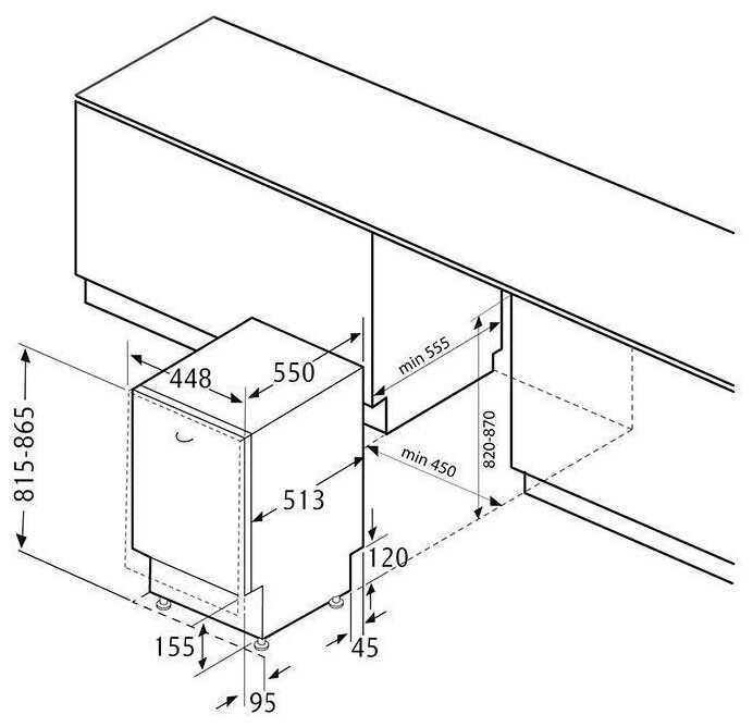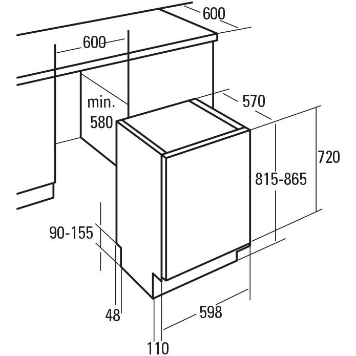 Габариты встраиваемых и частично встраиваемых посудомоечных машин