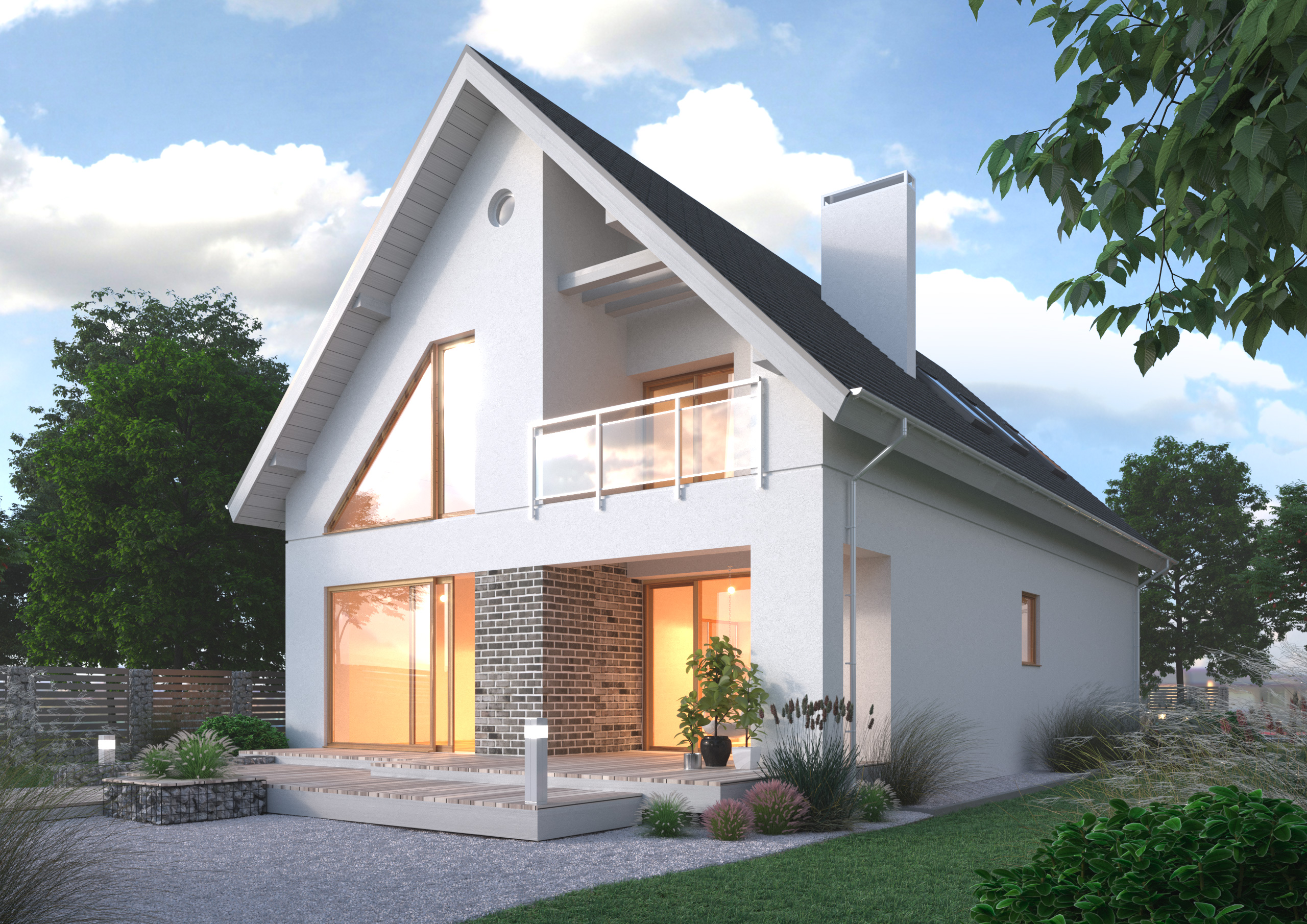 Двухэтажный дом с мансардой