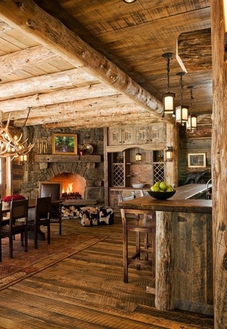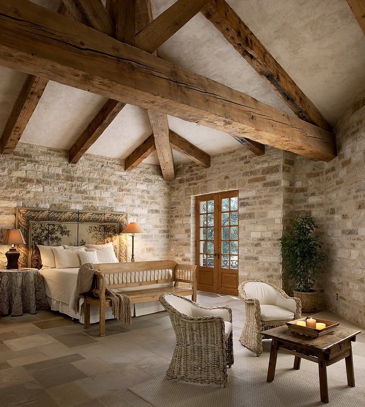 Основу рустикального интерьера составляет камень и натуральное дерево.