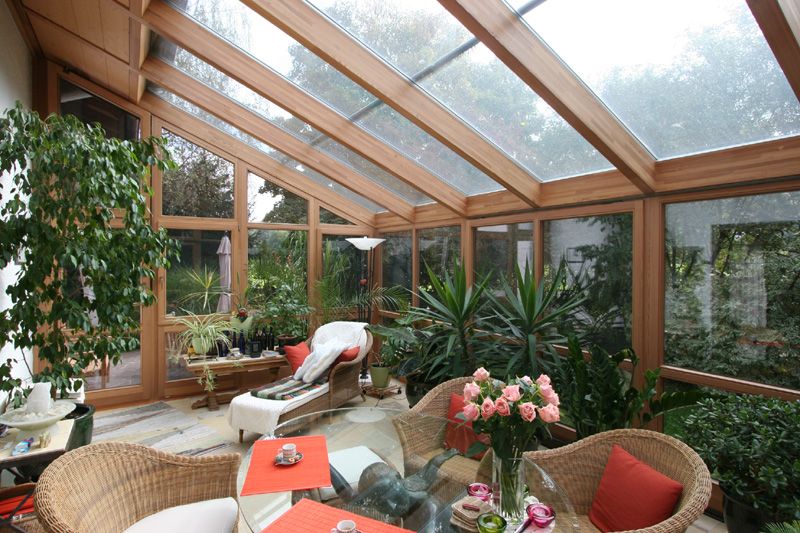 Виды зимних садов были бы неполными без таких строений. При верной конструкции и оборудовании они могут использоваться круглогодично. Сюда подводят все блага, нужные человеку, – свет, тепло, электричество и воду.