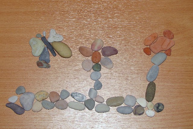 Задали нашей первокласснице в школе сделать любую поделку из камней. Это по окружающему миру у них такие проекты — «Моя малая Родина», полезные ископаемые… Хоть наш край и богат полудрагоценными и поделочными камнями, все же на улице они не валяются… Вот и пришлось исходить из того, что под ногами (в прямом смысле этого слова).