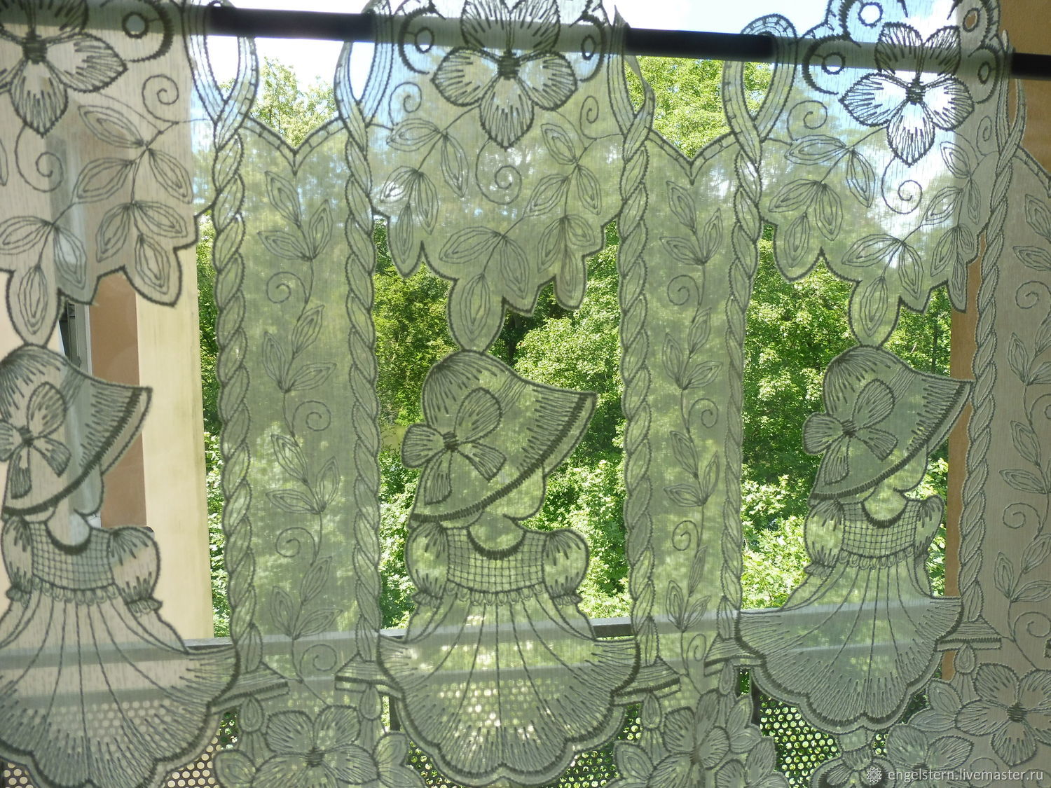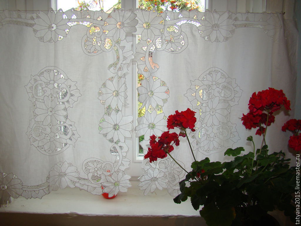 Можно купить белый тюль – имитацию рыбацкой сети с достаточно крупными ячейками или тончайшую паутинку, напоминающую снежный узор. Ткань на основе ячеек может стать отличным фоном для ночных штор, а может стать основой декора окна. Такой текстиль хорошо пропускает солнечный свет и отлично подходит для оформления гостиных и детских комнат. Тюль-сетку с цветочными узорами можно связать крючком. Это кропотливая работа, но такие изделия не только бесценны, но и необычайно красивы.