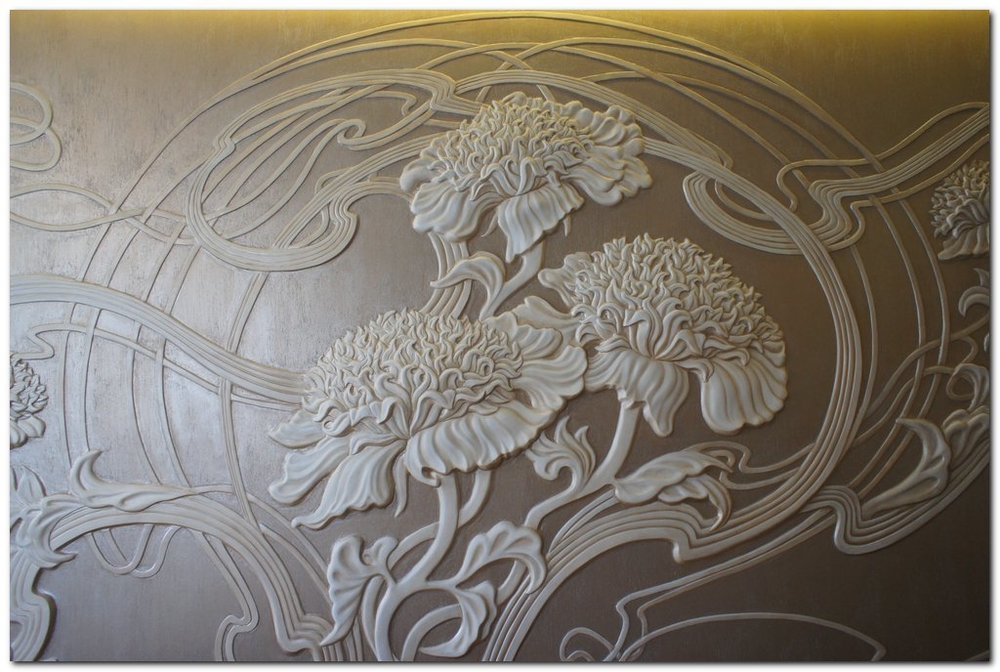 Каждый барельеф, созданный вручную автором, эксклюзивен. Даже один и тот же рисунок в разных помещениях будет смотреться по-разному. Барельеф специально создается под конкретный интерьер, так что повторить шедевр дважды все равно не получится.