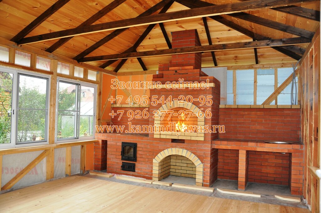 Дальше можно приступать к выкладке самого камина. Настоятельно рекомендуем, если вы новичок в делах строительных, обратитесь за помощью к профессионалам. (в современном мире их найти совсем не сложно, достаточно внимательно изучить отзывы). Самая распространённая ошибка при устройстве камина — неправильно собранный так называемый угол зуба, что чревато постоянным задымлением помещения, в котором находится камин.