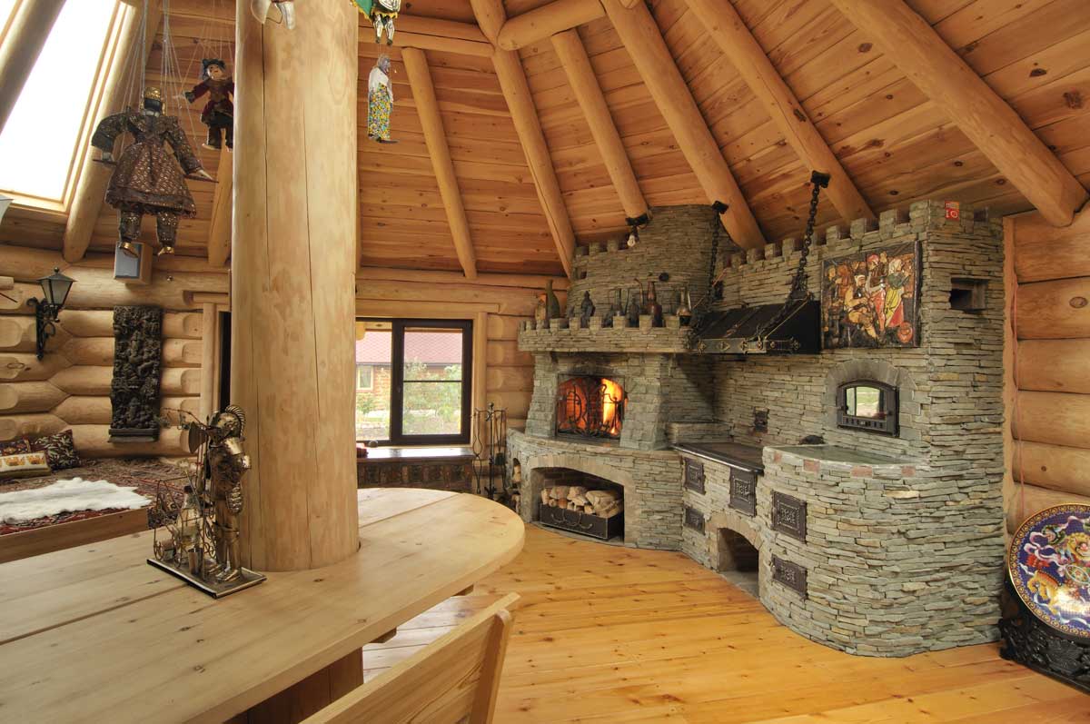 - Островные или центральные камины — могут разместиться в любом месте сооружения, обычно в центре (не самые практичные, часто такие выбирают, руководствуясь эстетикой).
