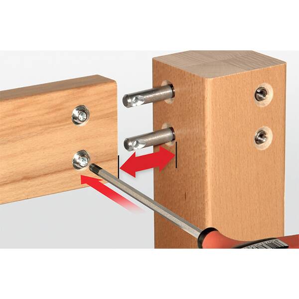 Представляют собой мелкие цилиндры из дерева для внутреннего крепления элементов. И хотя шканты обеспечивают надежное и прочное сцепление, достичь этого эффекта можно один раз и при ювелирной точности действий. Разбирать и вновь собирать такую мебель не получиться. И хотя монтаж этого вида фурнитуры достаточно прост, важно действовать постепенно. Сначала выполняются отверстия под крепеж. Они должны быть неглубокими и не широкими, в противном случае цилиндр будет болтаться, либо вовсе не встанет даже при добавлении клея. Затем в них примеряется шкант и при фиксировании крепежа собирается мебель путем насаживания элемента на выступающий край цилиндра.