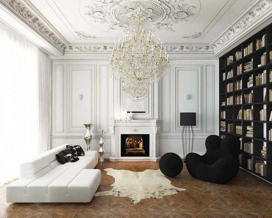 Правила и исключения в оформлении черно-белой гостиной