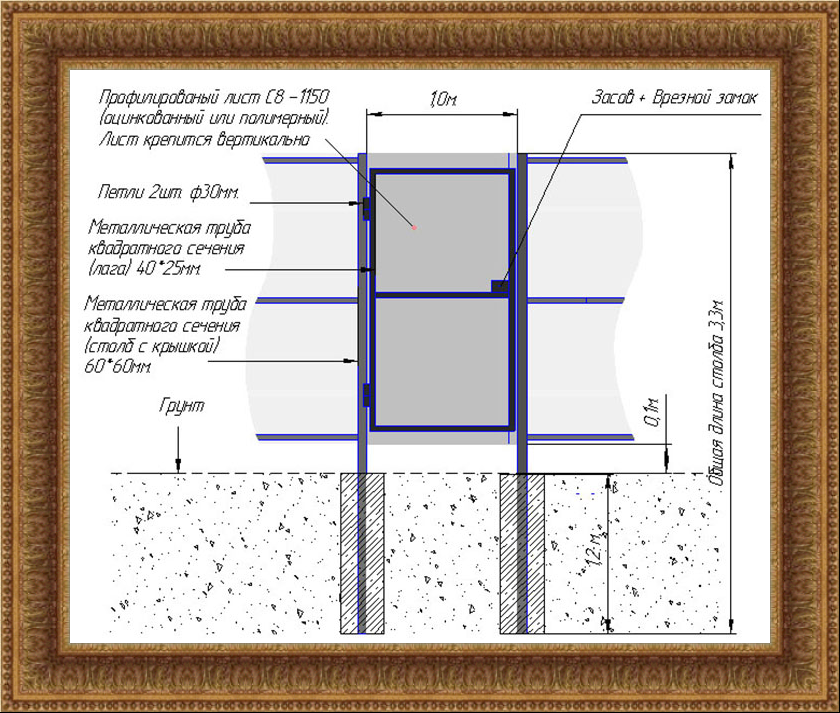 Определив основные размеры ворот из профнастила, делаем чертежи или схемы (эскизы) конструкции.