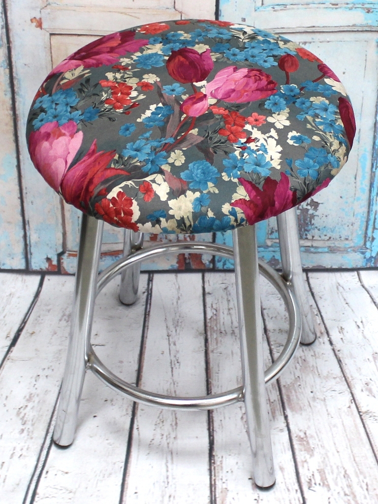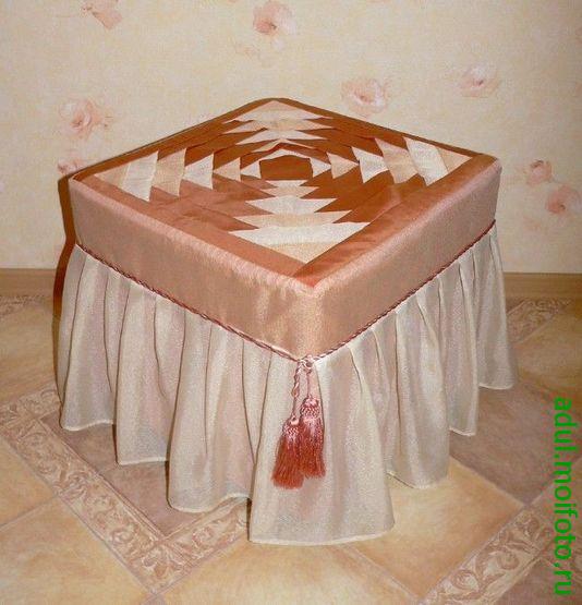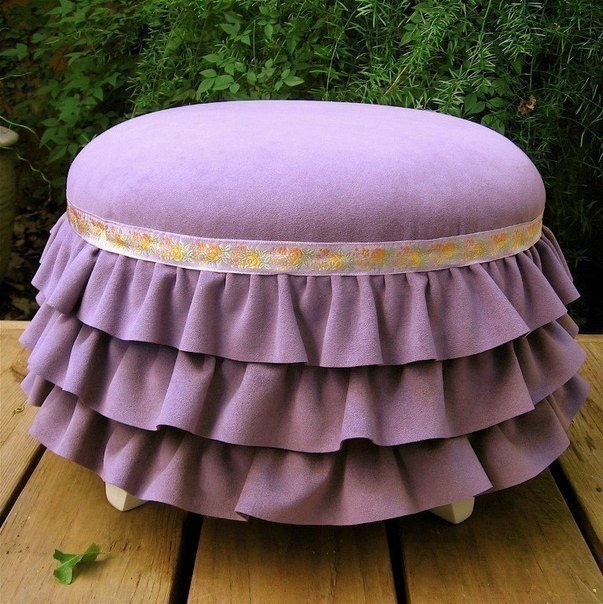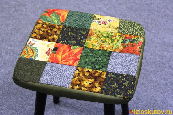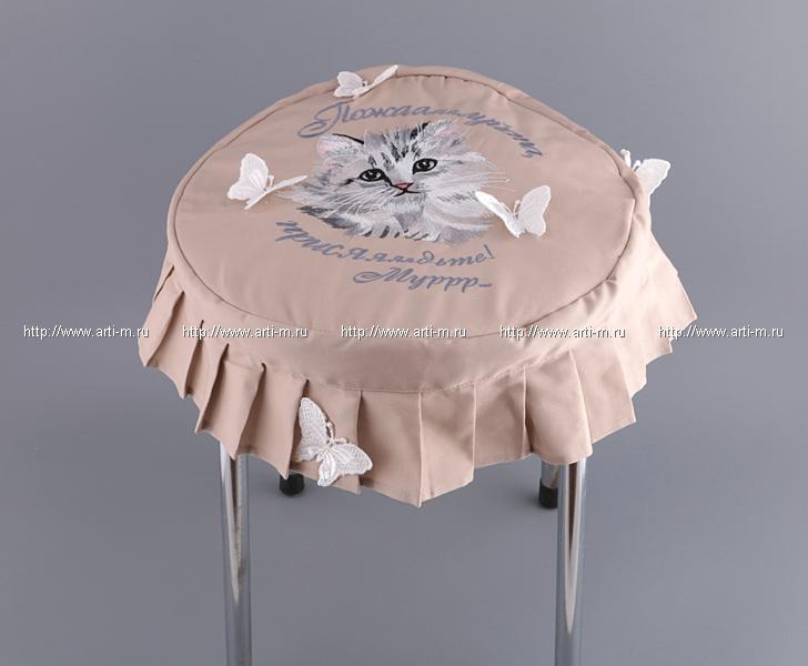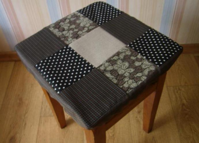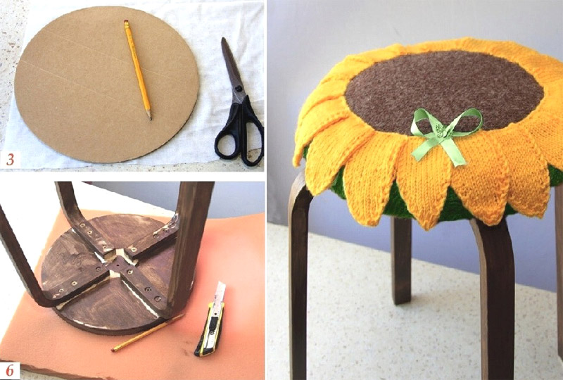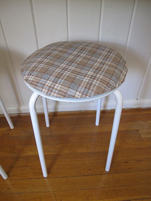 Чтобы не заморачиваться с мерными инструментами, рассчитывая диаметр, можно просто прикрепить к поверхности табуретки лист картона или газеты, а затем вырезать по контуру.