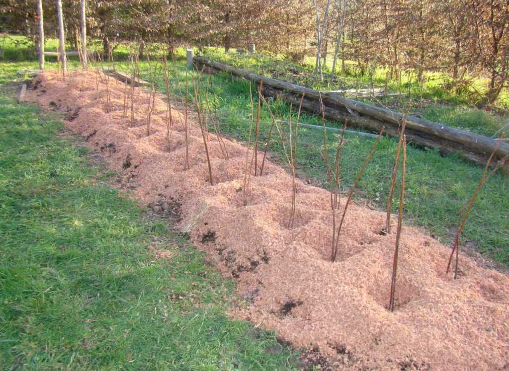 Все ягодные кустарники следует высаживать на выровненном участке, где нет близкого залегания грунтовых вод. Следует знать, что максимально влаголюбивой культурой является калина, а голубика предпочитает кислые почвы. Все кустарники сажаются вертикально за исключением смородины черной, ее нужно сажать под углом 45 градусов и после посадки обрезать все побеги, оставив лишь их части с 5-6 живыми почками.
