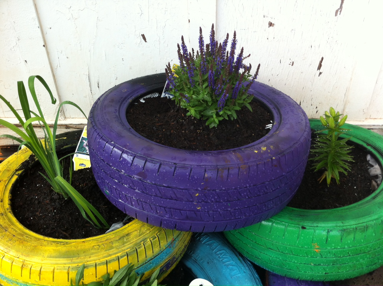 Использование старых покрышек на даче