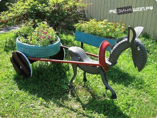 Умельцы изготавливают из старых шин действительно шикарные садовые украшения, среди которых: лебеди, божьи коровки, коровы, лягушки, чайные кружки и т.д.