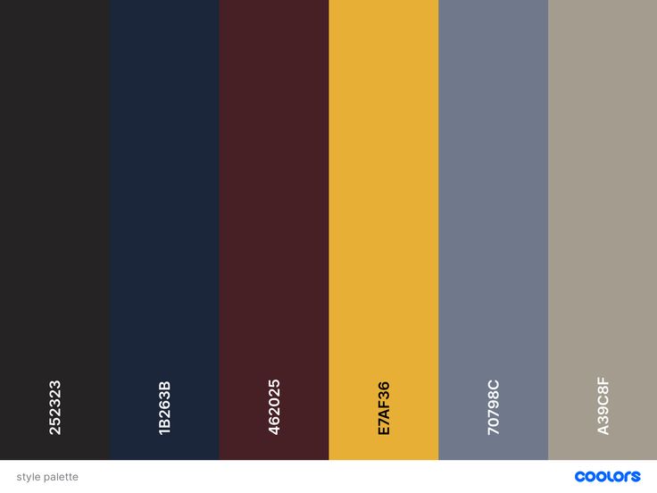 Слева направо : фон, меню, цвет при наведении, основной текст, дополнительный текст