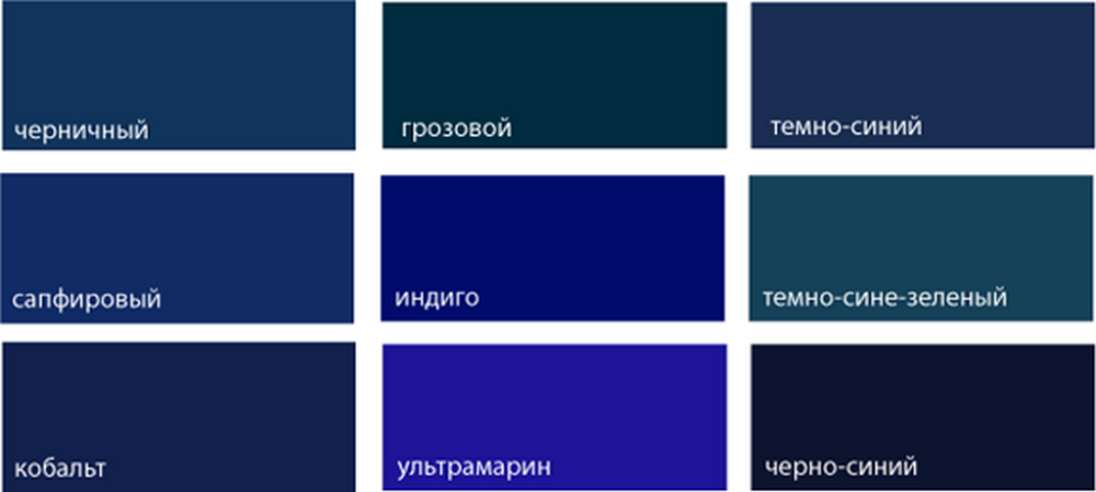 Интересным будет сочетание голубого и темного зеленого. Для примера таблица, составленная из аквамарина, цвета яйца дрозда, сине-зеленого, черно-синего.