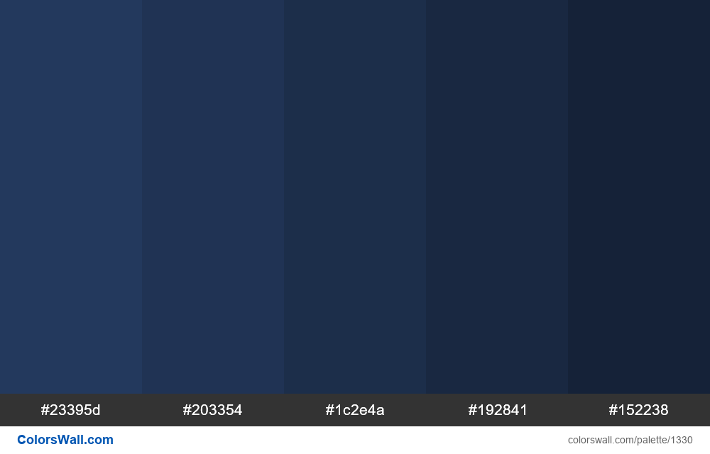Слева направо : фон, карточка, цвет при наведении, основной текст, вторичный текст темный режим. Для каждого из оттенков значение синего является самым высоким.