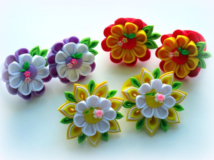 Маленькие цветочки канзаши для шпилек – Уроки Рукоделия