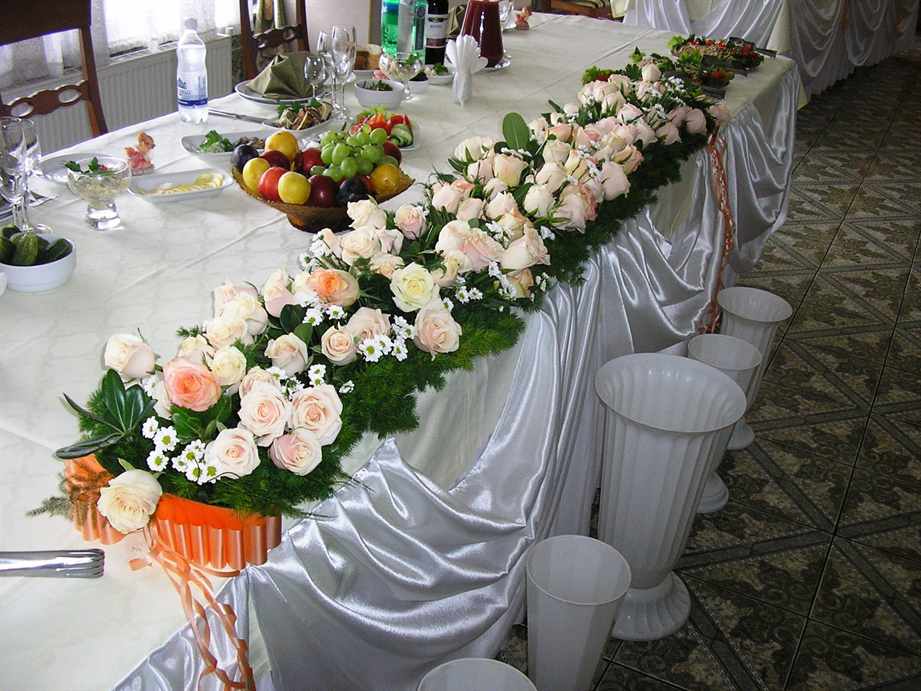 Украшение свадебного стола живыми цветами — оформление стола жениха и невесты цветами на свадьбу