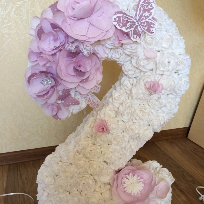 Для дочки на 2 годика я делала две цифры. День рождения мы украшали в стиле маленькой принцессы. Все было в нежных розовых и белых тонах. Так же и цифры. Одна — большая, изготавливалась для фотосессии. Вторая — маленькая, для украшения стола. В этом мастер классе я покажу, как делала большую цифру.