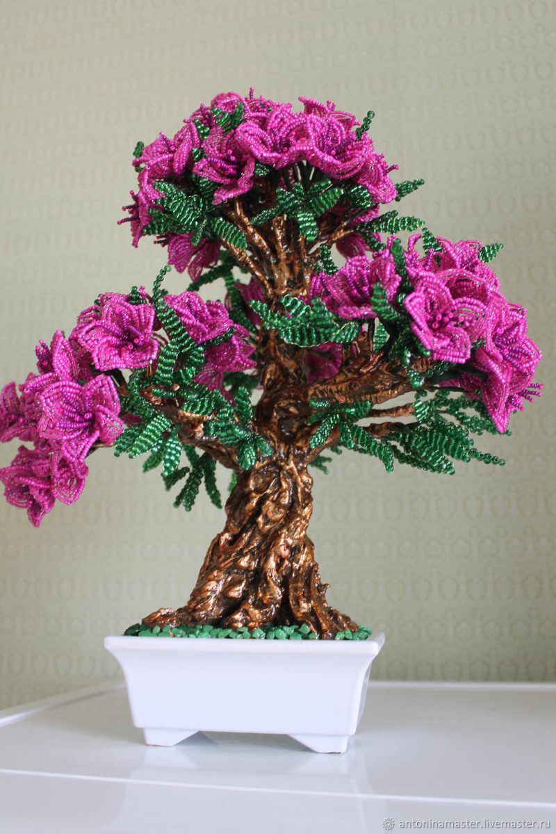 Наверняка многие видели вычурные деревца в горшках. Эти деревья выращиваются благодаря искусству бонсай — искусству создания абсолютных копий растений в уменьшенном виде. Такое дерево стоит дорого, но его можно создать и самостоятельно. В этой статье мы расскажем, как сделать бонсай из бисера: мастер-класс прост.