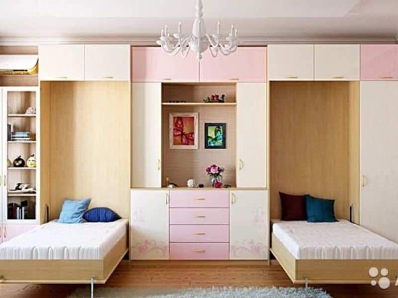Стол в этой модели поднимается вверх, и нет необходимости вечером что-то убирать со стола, что школьнику особенно понравилось: наводить порядок в комнате и в том числе на столе он, как и многие дети, предпочитал раз в неделю. Две односпальные горизонтальные кровати-трансформеры поставили на противоположные стены, и вечерами дядя с племянником могли видеть друг друга и общаться всласть.