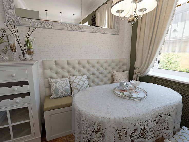 Для легких интерьеров с винтажным налетом всегда напрашивается диван-скамья с корпусом из цельной древесины и мягкими подушками для сиденья. Корпус скамьи изготавливается в одном стиле с кухонным гарнитуром. Его форма может быть и прямой, и угловой.