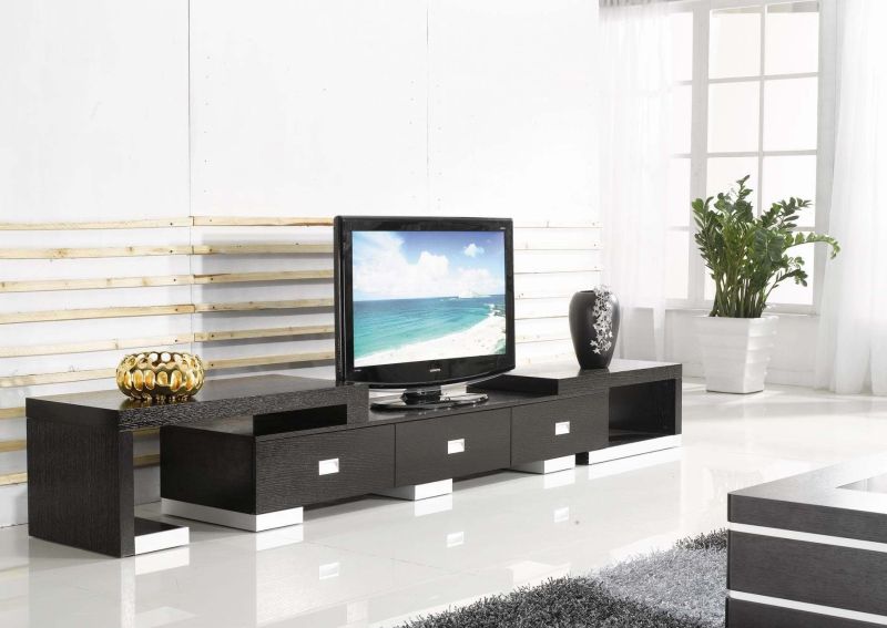 Различия конструкции и внешнего вида тумбочек для телевизора также определяют их дополнительные полезные функции. Наиболее распространенной является прямоугольная конфигурация, когда длина изделия лишь немного превышает размер телевизора. Эти тумбы дополняются парой полок, открытых или с дверцами, которые используются для хранения.
