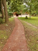 Технология изготовления такой тропы несколько проще, чем из бетона. Выкапывается траншея для ложа глубиной 15 сантиметров, засыпается подушка из песка толщиной 5 сантиметров, утрамбовывается, на песок укладываются кирпичи, не забывая делать уклон к краям. Сверху засыпают песком, проливают водой из шланга, после осадки песка досыпают его еще раз, опять проливают. Эту процедуру проделывают до тех пор, пока песок не заполнит все щели до верха кирпичей. Покрытие получается очень прочным, морозостойким, хорошо прогревается летом, по нему приятно ходить босиком. Большую роль здесь играет достаточная утрамбовка кирпича, чтобы сохранялась ровная поверхность и края кирпичей не торчали из полотна.