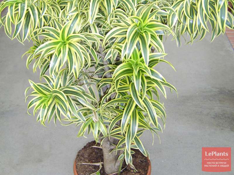 Драцена принадлежит к семейству «Агавовых» и родом из тропических, субтропических континентов Южной Африки и Азии. Изящное растение на ровном, неветвящемся, густолиственном стволе, достигающее свыше 1,5 метра. Листья жесткие, кожистые, ярко-зеленые с продольными пестрыми линиями белого и желтого цвета.