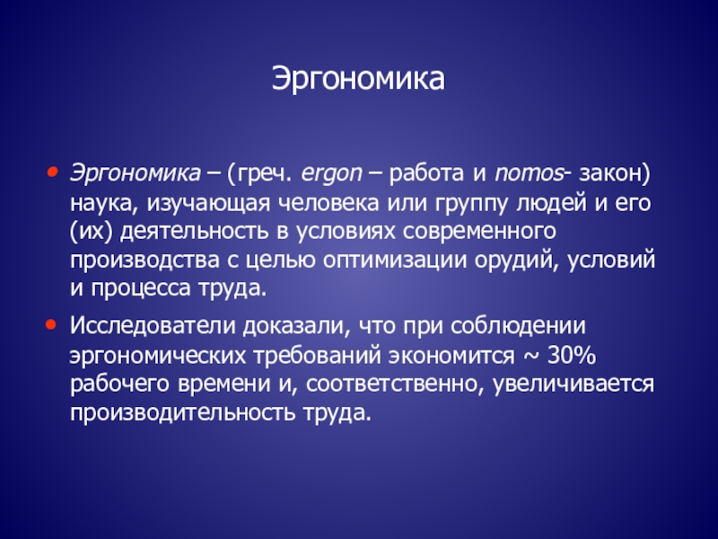 «Эргономика» происходит от греческих слов «эргон», что означает работа, и «номос», что означает законы.