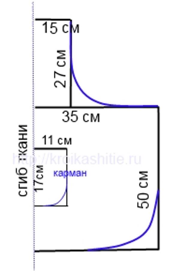 - Простая выкройка фартука для ребёнка 5-7 лет